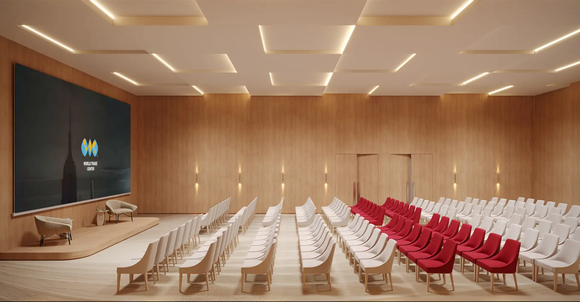 Espaço para eventos e conferências com capacidade para 210 pessoas.